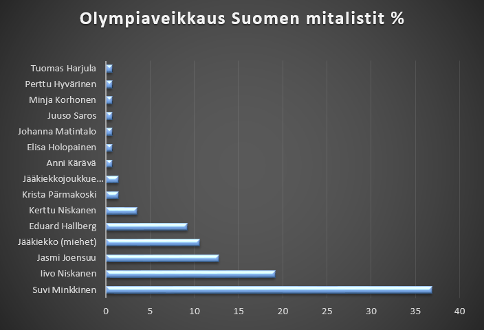 Kampanjan myötä selvisi, ketkä suomalaisurheilijat ovat seuraajiemme mitalitoivoja Milano–Cortinan olympialaisissa. Kärjessä on niinkin herkän lajin kuin ampumahiihdon edustaja Suvi Minkkinen, joka on tällä kaudella ollut vakuuttavassa kunnossa. Kärkikolmikkoon äänestettiin Suvin lisäksi Iivo Niskanen ja Jasmi Joensuu. Pääsemmekin jo pian jännittämään heidän ja muiden huippujen suorituksia perjantaina 6.2. alkavissa Milano-Cortinan kisoissa.